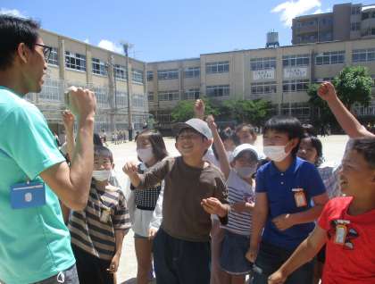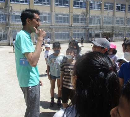 外国語活動のUnit2の単元で、友達の好きな遊びを聞き合い学級遊びを決めてALTのアリオーラ先生を遊びに誘いました。