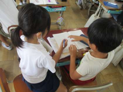 学んだことを生かしながら、自分なりに考え、ペアで話し合って解決しようとしていました。ペアで説明し合っていると「分かった!」や「なんでこうなるの?教えて!」などやりとりをしていました。