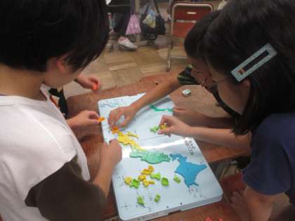 今日は、パズルを用いて47都道府県を声に出して唱えながら覚えていました。とても小さい面積の都道府県から長い都道府県など、形に注目しても面白かったですね。