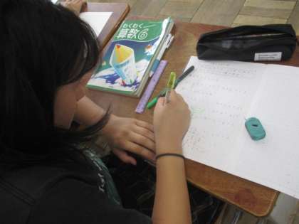 今日は今まで学習した計算の決まりが分数を当てはめても成り立つのか調べる学習でした。