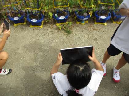 2学期になって、ギガ端末を使って学習することを頑張っている1年生。だいぶ使い方に慣れてきました。今日は、ロイロノートで朝顔の写真を撮って、先生に提出することに挑戦。ピントがずれてしまったけれど、できました!また、きれいに撮れるようにやってみましょうね。