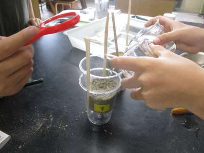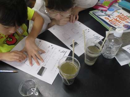 「雨水は地面に染み込むのだろうか。」という学習問題を立てた子どもたちは実験を行いました。