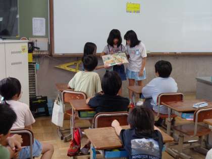 今日は、本係さんによる読み聞かせがありました。おすすめの本も紹介してくれています。