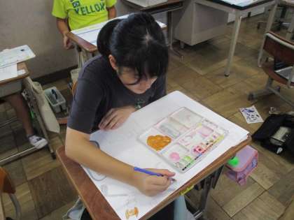 お話から想像を広げて絵を描いています。丁寧に下書きをした後、少しずつ色を付けています。仕上がるのが楽しみですね。