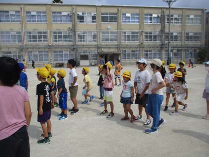 3年生は、1年生のことを考えて弱いボールを投げてくれたり、「この線まで来て投げていいよ。」と優しく声をかけてくれたり・・・
