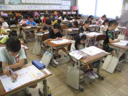 国語「やくそく」では、グループで楽しく練習した音読発表会が終わり、テストをしました。