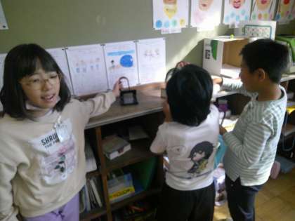 今日は「教室の中で磁石にくっつくものとくっつかないもの」について調べました。