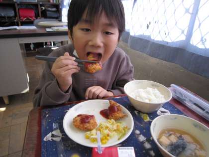 いただきま〜す! 公開日 2023/11/22 更新日 2023/11/22 学校の様子 とっても美味しそうに食べる子どもたち。 「カラっとあがっていて美味しい」「お店のより美味しい」 と、笑顔がいっぱいでした。 給食調理員さん、いつも美味しい給食ありがとうございます。