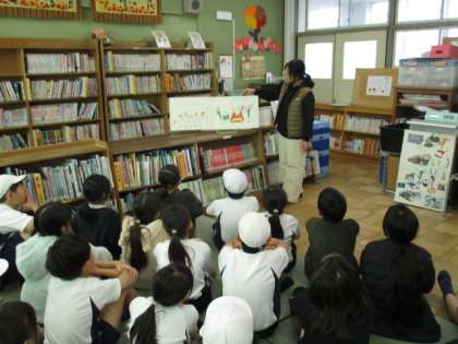 国語の時間に図書室に行き、絵本の読み聞かせをしていただきました。