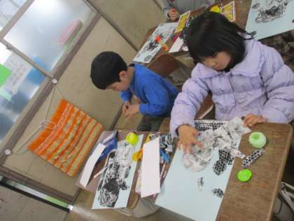 にこポカ2年生〜紙版画をすったよ〜