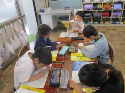 写真は教科書40ページにある絵から人を探し合っている様子です。