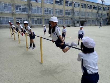 2年生までは、てつぼうあそびをしてきましたが、3年生からは一気に難しい技が増えました。