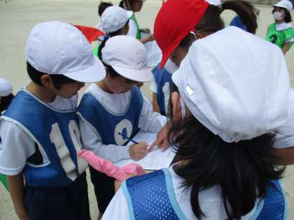 走順を変えて自分達のチームのタイムを必死に縮めようと頑張っていました。少しでもタイムが縮まった時には、喜びの声があがっていました。