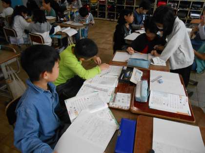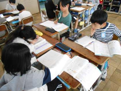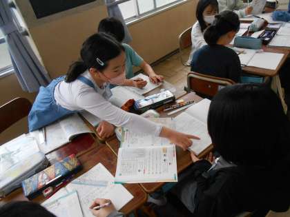 グラフを指さしながら、友だちと話している姿が素敵でした。