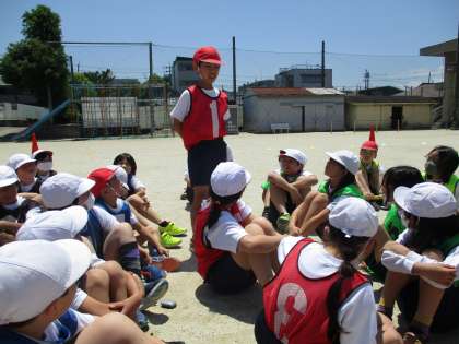 リレーの学習が最後になりました。これまでのバトンパスで上手くいかなかったことをチーム内で話し合い、1秒でも縮められるように何度も作戦を立てています。