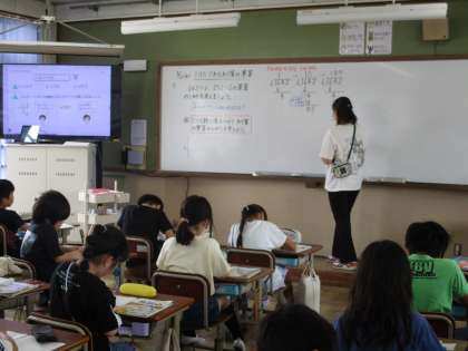 算数科では、1けたでわるわり算の筆算に取り組んでいます。たてる数に気を付けて筆算をしていました。