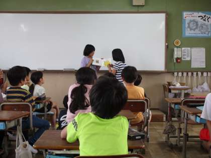 みんな本に興味を示して、集中して読み聞かせを聞いています。
