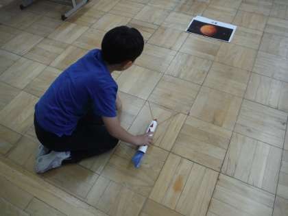 着陸したい惑星を決めて、その惑星までの距離を考えてゴムを引く強さを考えていました。
