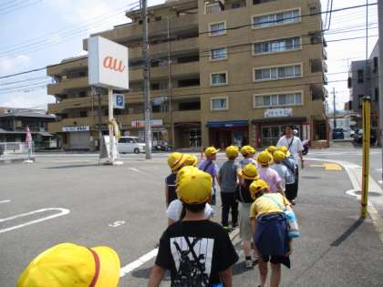 学校から南の方へ校区探検に行きました。