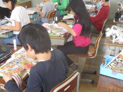 社会科「わたしたちのくらしと食料生産」の学習でわたしたちがいつも食べているものがどこからきているか、チラシを使って調べました。