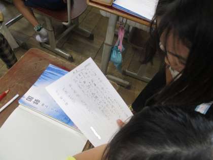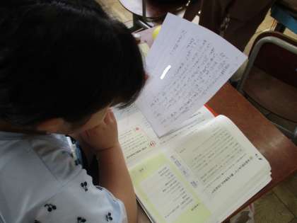 下書きが完成したので、友達と読み合って、字の間違いや内容の確認をしました。自分では間違いがないと思っていても、友達に見てもらうとあっ!と思うことがありますね。