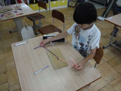 自立活動の時間にちょうちょ結びの練習をしました。どこにひもを通すのか、じっくり考えながら結んでいました。初めはうまくいかなくても、何度も練習するうちにコツをつかんでいく様子がありました。