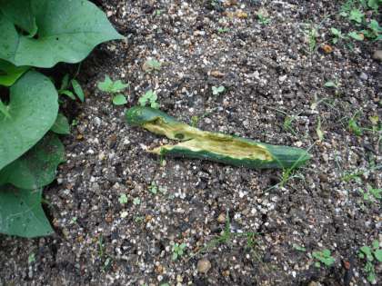 先日カラス対策を施しましたが、それをあざ笑うかのように実りつつあったきゅうりが食べられてしまいました、、、防鳥ネットをかけたとうもろこしは無事だったので、きゅうりにも防鳥ネットが必要なようです。