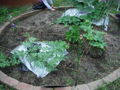 きゅうりがカラスにやられたことを受けて、きゅうりの畑にも防鳥ネットをはりました。