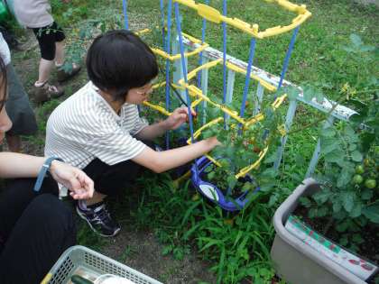 わかばの畑できゅうりとミニトマトが収穫できました。収穫できるものが少しずつ増えてきました。