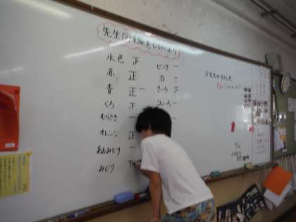 夏休み前に作った先生図鑑を使って、「先生の一番好きな色は何か」を調べ、表やグラフにまとめる学習をしました。一度数えたものを重ねて数えないことや、数が少ないものは「その他」にまとめることを確認しました。