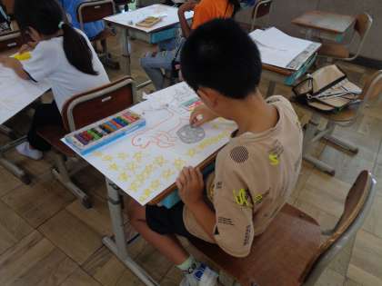 『ことばから思いうかべて』の学習で、お話を聞いて絵をかいています。