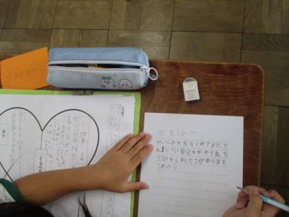 自分が手紙を出して経験、もらった経験とお話を比べて、手紙を書くことができていました。