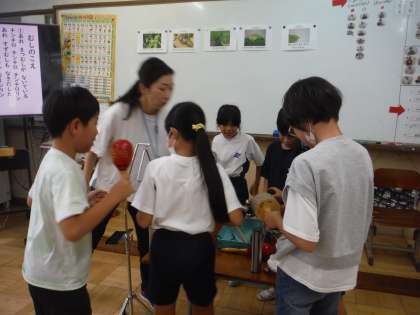 様々な楽器を使って様々な虫の声を表現する学習を行いました。