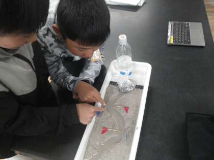 理科の学習では、流れる水のはたらきについて学習しています。