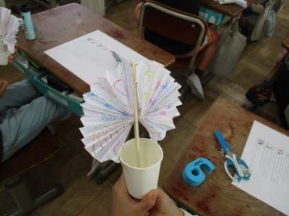 今日は教科書を読んで、実際に紙コップ花火を作りました。