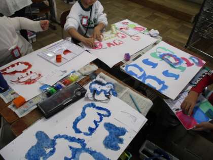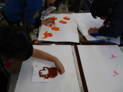同じ型紙でも色や形、向きを工夫して、いろいろな表し方をしていました。