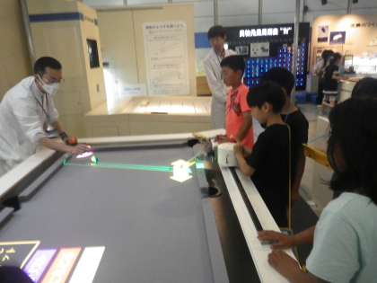 展示室に展示されているものを見たり、、触れたり、体験したりしながら学びました。