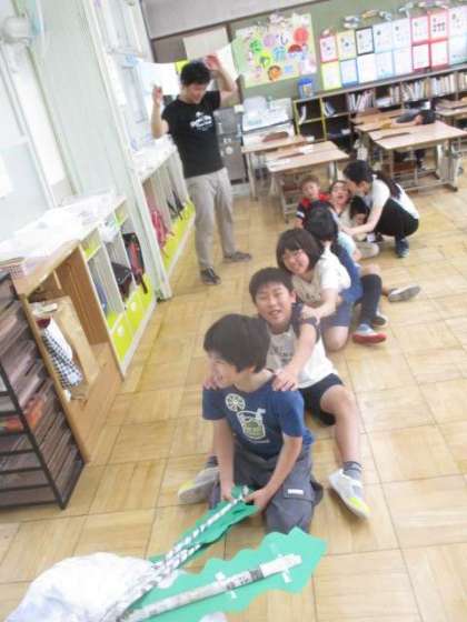 みんなで おおきなかぶをひきぬいて がんばりました。