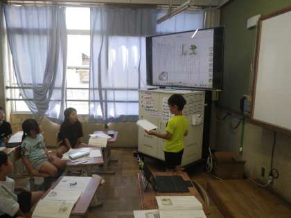 子ども達は、教科書に書かれている文から登場人物の気持ちを考えています。