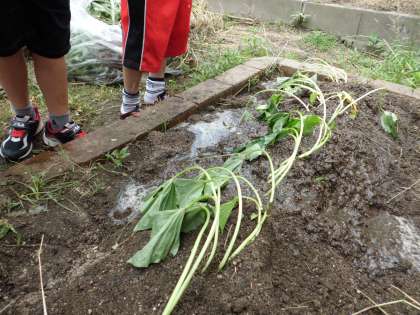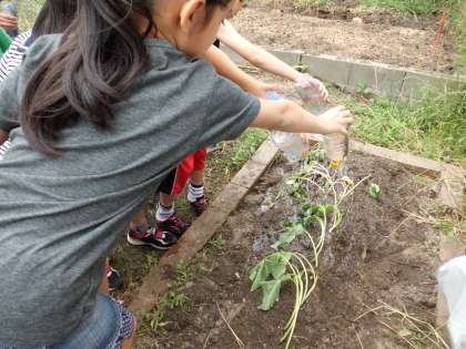 大きなおいもがたくさんできるように,毎日水やりをがんばっています。