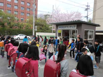 今日は4年生のあいさつ運動でした。天気は曇り空でしたが,みんな元気いっぱいにあいさつをすることができていました。また,今日は女性会の方々もあいさつ運動をしてくださっていたので,いつも以上に明るくてにぎやかな登校風景となりました。