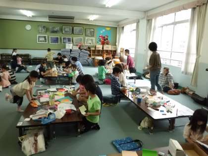 次に鉛筆立てづくり。それぞれ,牛乳パックを使って,色や模様・形を工夫して素敵な鉛筆立てをつくっていました。