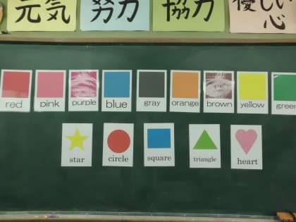 今日は,色と形の言い方や,英語と日本語の発音の違いを学習しました。