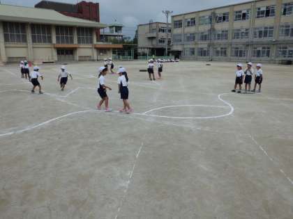今1年生は体育を3クラス分かれて別々の学習をしています。