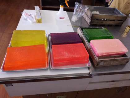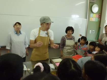 まず,和菓子づくりでは,永田さんにお世話になり,材料や作り方について,ていねいに教えていただきました。