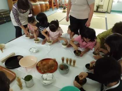 さて,お話を聞いた後,お茶をたてる体験をしたり,実際に和菓子・お抹茶をいただいたりしました。
