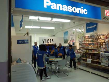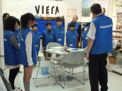 パナソニックでは,省エネルギーやユニバーサルデザインの製品についてお客様に説明したり,これからの家電製品について考えたりしました。