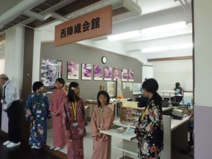 西陣織会館では,お客様に対して西陣織の紹介や小物の販売をしました。