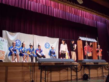 1組は,現代版ちゃんぽん時代劇に挑戦しました。「〜でござる。」の口調の役人,おとぎの国の王子,ピーターパンなど,みんながそれぞれの役になりきって会場中に笑いを届けることができました。