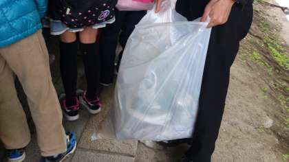 みんながんばりました。昨日も掃除されたそうですが,それでも2袋集まりました。今から帰ります。